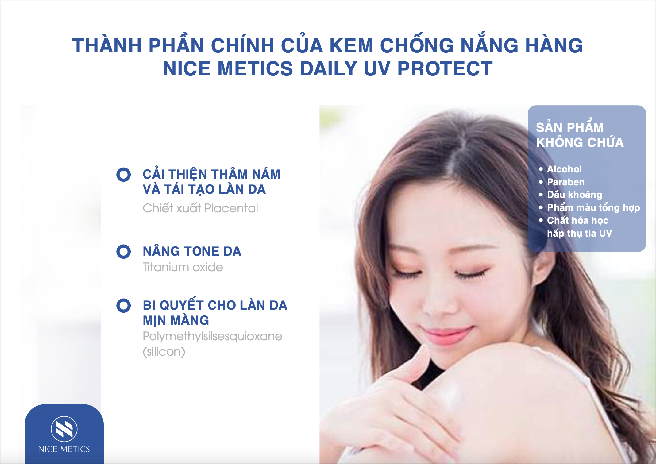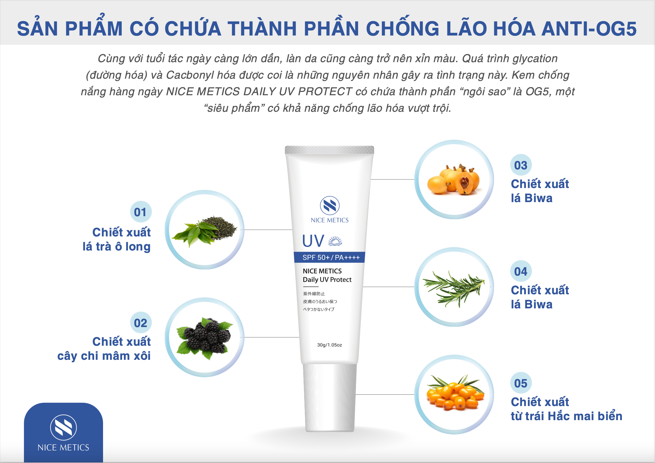 Nice Metics là nhãn hàng dược mỹ phẩm đến từ Nhật Bản nhập khẩu chính ngạch bởi tập đoàn Nice Group. Các sản phẩm dược mỹ phẩm Nice Metics được nghiên cứu bởi đội ngũ chuyên gia da liễu hàng đầu Nhật Bản, kết hợp cùng hàng trăm các giáo sư, tiến sỹ của các trường đại học danh giá của Nhật cho cho da đời các sản phẩm chăm sóc da an toàn, phù hợp cho mọi loại da. Thành phần độc quyền xuất hiện trong các sản phẩm của Nice Metics là hợp chất OG5 - siêu sao chống lão hoá từ 5 loại thảo dược quý hiếm và chất Heparinoid (chất giống heparin) giúp cấp ẩm, chống viêm và kích thích lưu thông máu dưới da. Tất cả những sản phẩm thuộc Nice Metics đều đạt chứng nhận bởi bởi SGS - Tổ chức hàng đầu thế giới về tiêu chuẩn chất lượng, kiểm nghiệm bởi Bộ Y tế Nhật Bản và phải trải qua hơn 100 bước kiểm tra nghiêm ngặt tại nhà máy trước khi cho ra sản phẩm tới tay người tiêu dùng. Chính vì vậy, người tiêu dùng từ nay hoàn toàn yên tâm khi sử dụng dòng mỹ phẩm sạch, tinh khiết và an toàn đến từ Nice Metics Nhật Bản.